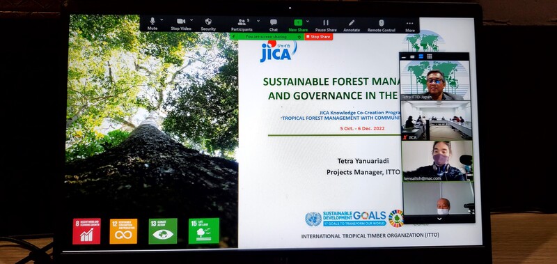 ITTO Projects Manager Tetra Yanuariadi delivered a virtual lecture on sustainable forest management (SFM) and governance in the tropics on 17 November 2022 as part of the Japan International Cooperation Agency (JICA)’s knowledge co-creation programme.