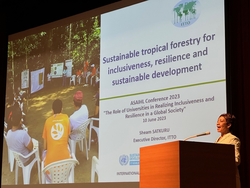 ITTO Executive Director, Sheam Satkuru, was the keynote speaker at the 2023 Association of Southeast Asian Institutions of Higher Learning (ASAIHL) International Conference held on 10 June 2023 at the Soka University in Tokyo, Japan. This hybrid event was attended by over 280 participants and Soka University’s Governing Council members.ITTO officers give lecture to Yokohama high-school students on wood use in Japan