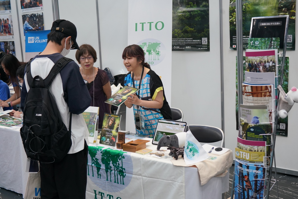 Los miembros del personal de la OIMT tuvieron la oportunidad de compartir con el público japonés la importante labor que realiza la Organización. © Mitch St.Hilaire/OIMT