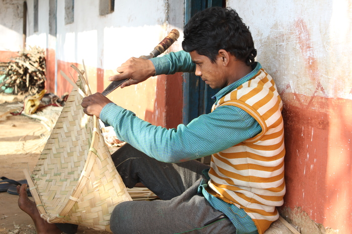 • Handy craft<br><br>A young man makes a winnower using bamboo harvested in local hill forests in Lohaghat, Uttarakhand, India. ITTO Fellow Deepti Verma has helped assess the potential of non-timber forest products as a source of livelihoods in the area.<br>