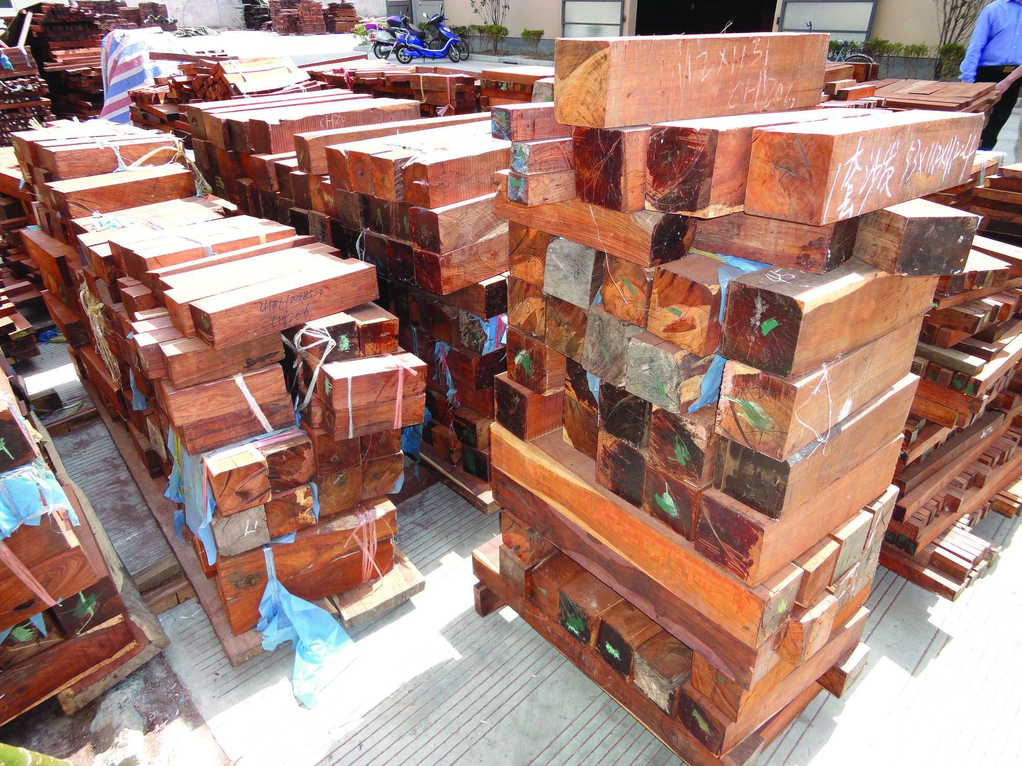 Des sciages de bois de rose pour la fabrication de meubles à Shanghai, en Chine. © L. Qiang/OIBT