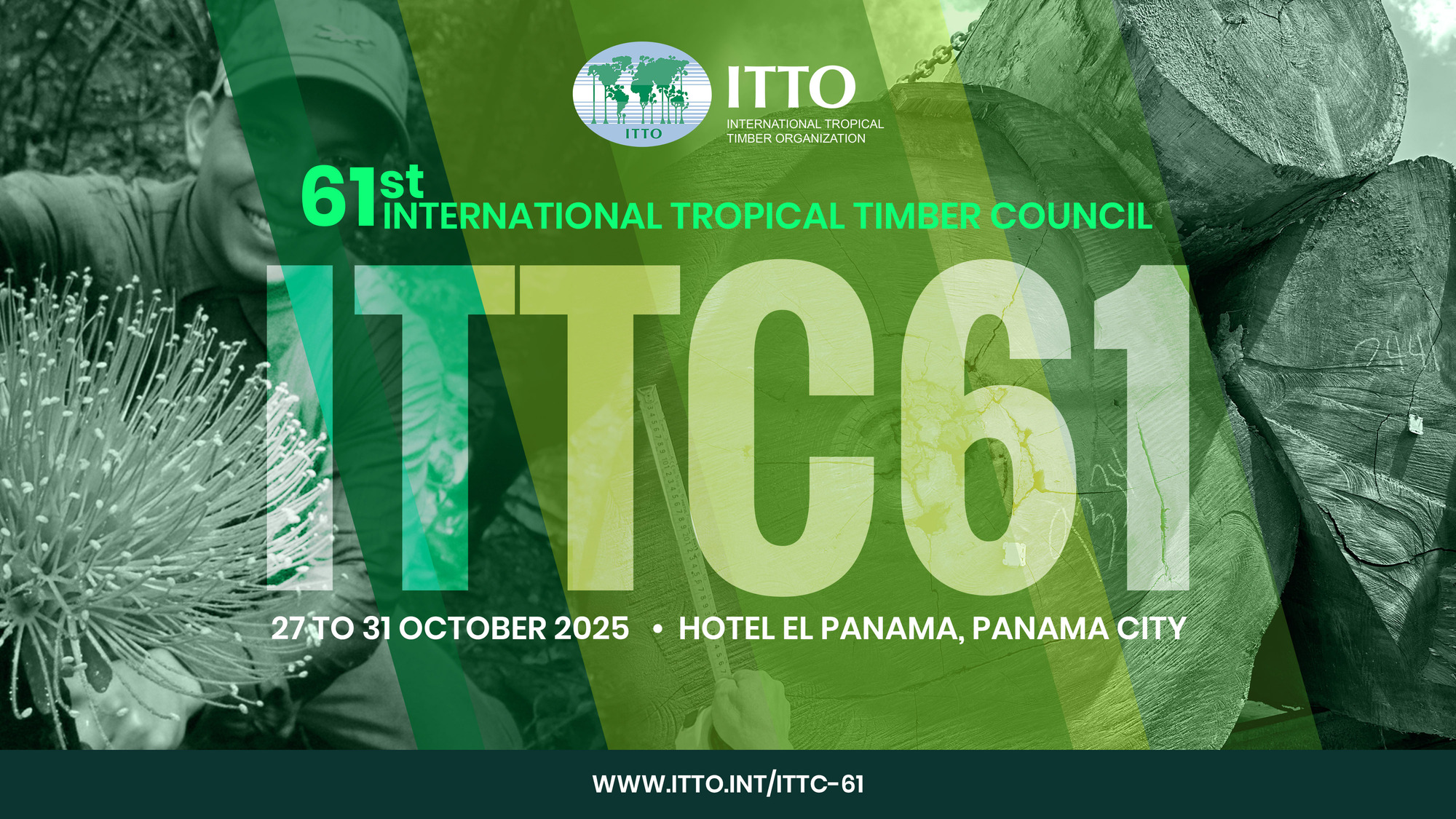 L'Organisation internationale des bois tropicaux (OIBT) et le Ministère de l'environnement de la République du Panama (MiAMBIENTE) organisent la 61e session du Conseil international des bois tropicaux (CIBT 61) et sessions associées des comités qui se tient à l'hôtel El Panama, à Panama (Panama) du 27 au 31 octobre 2025.