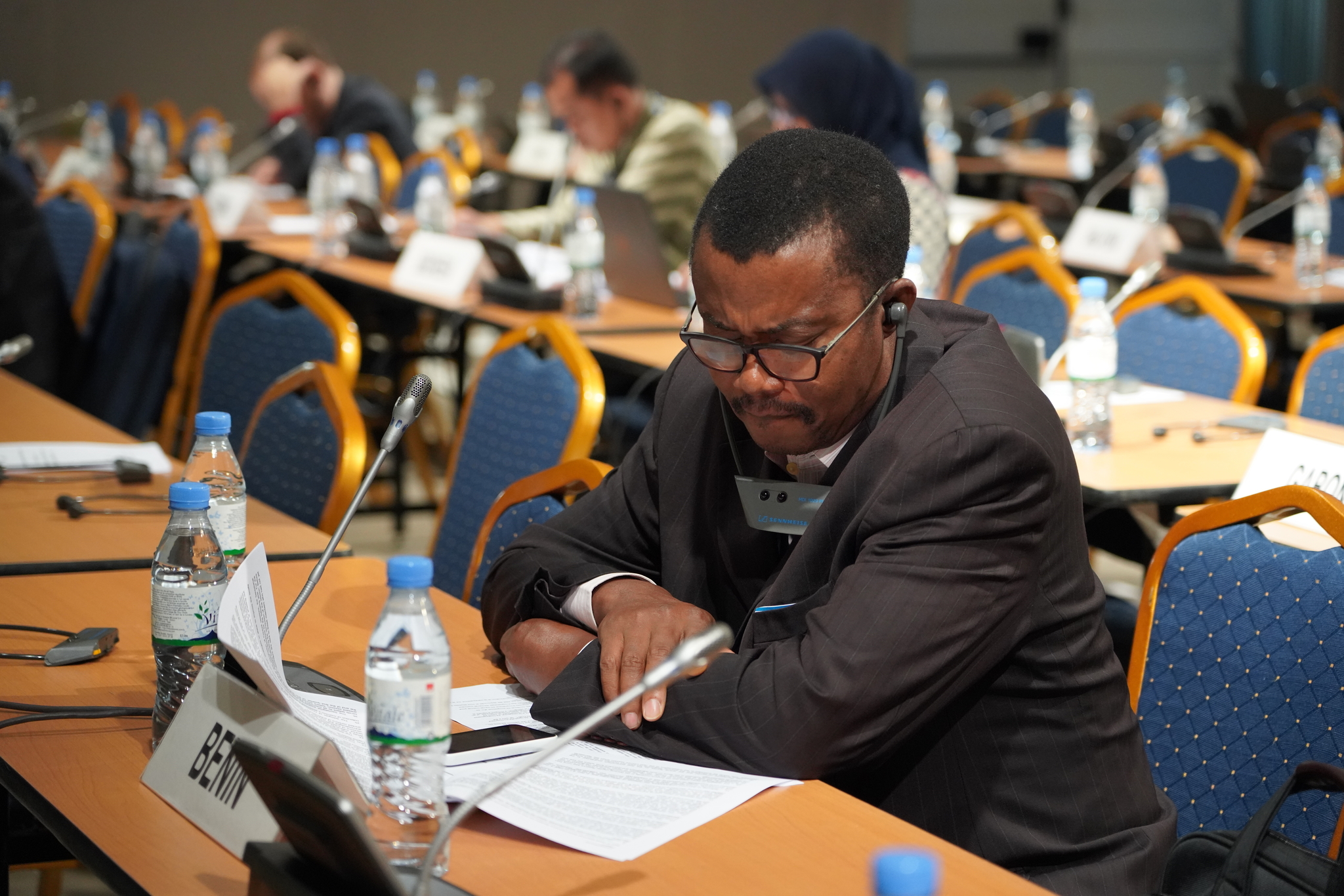 Mr Achille Orphée Lokossou (Benin) studies a document during a session of the Committee on Finance and Administration. Photo: R. Carrillo/ITTO