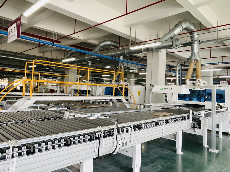 The workshop in a small-scale Chinese wooden door manufacturing company.