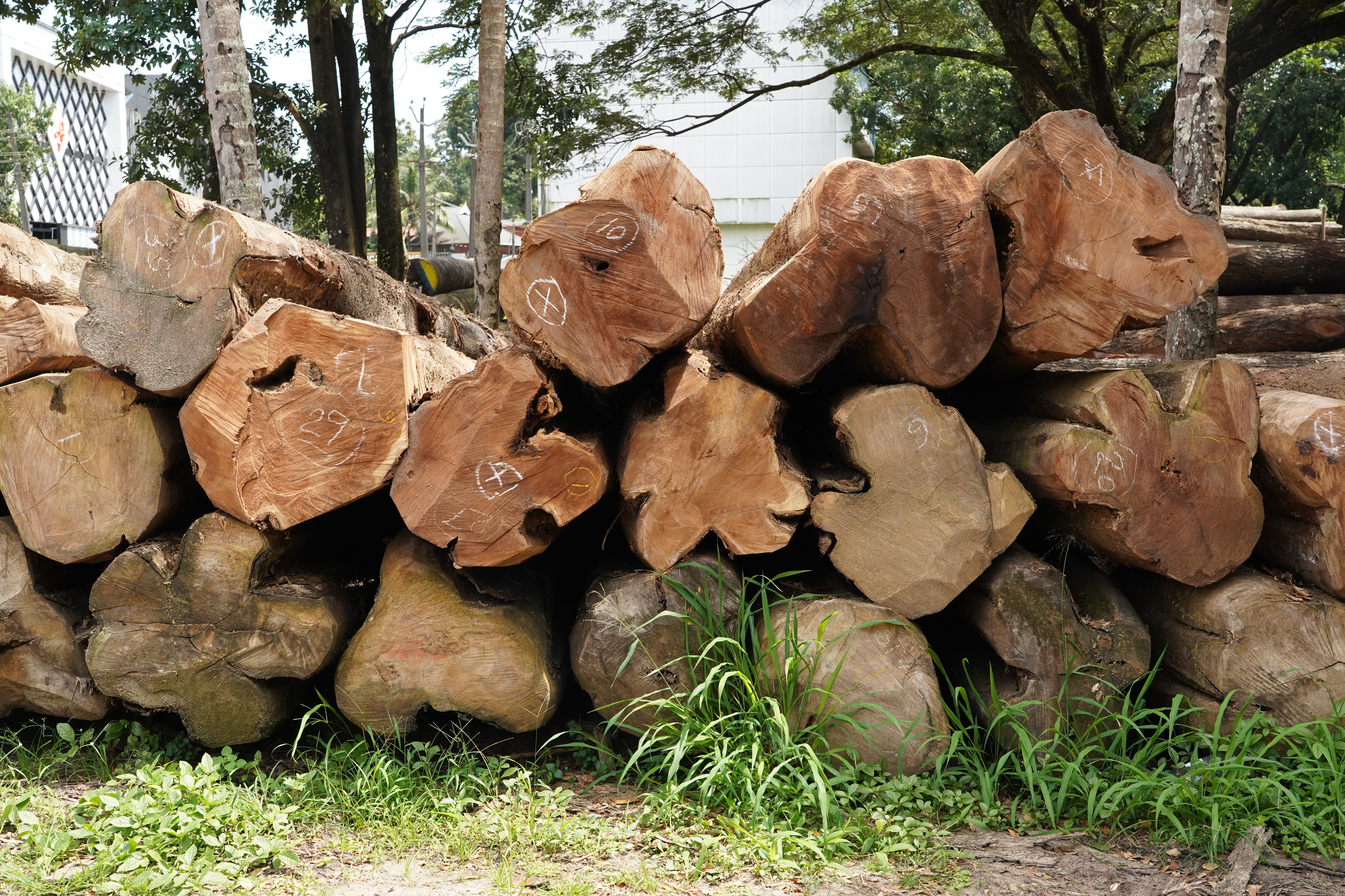 A pile of tropical timber logs in a logyard in Nilambur, India – symbolizing the building blocks of a sustainable tropical timber sector. © Paula Sarigumba/ITTO